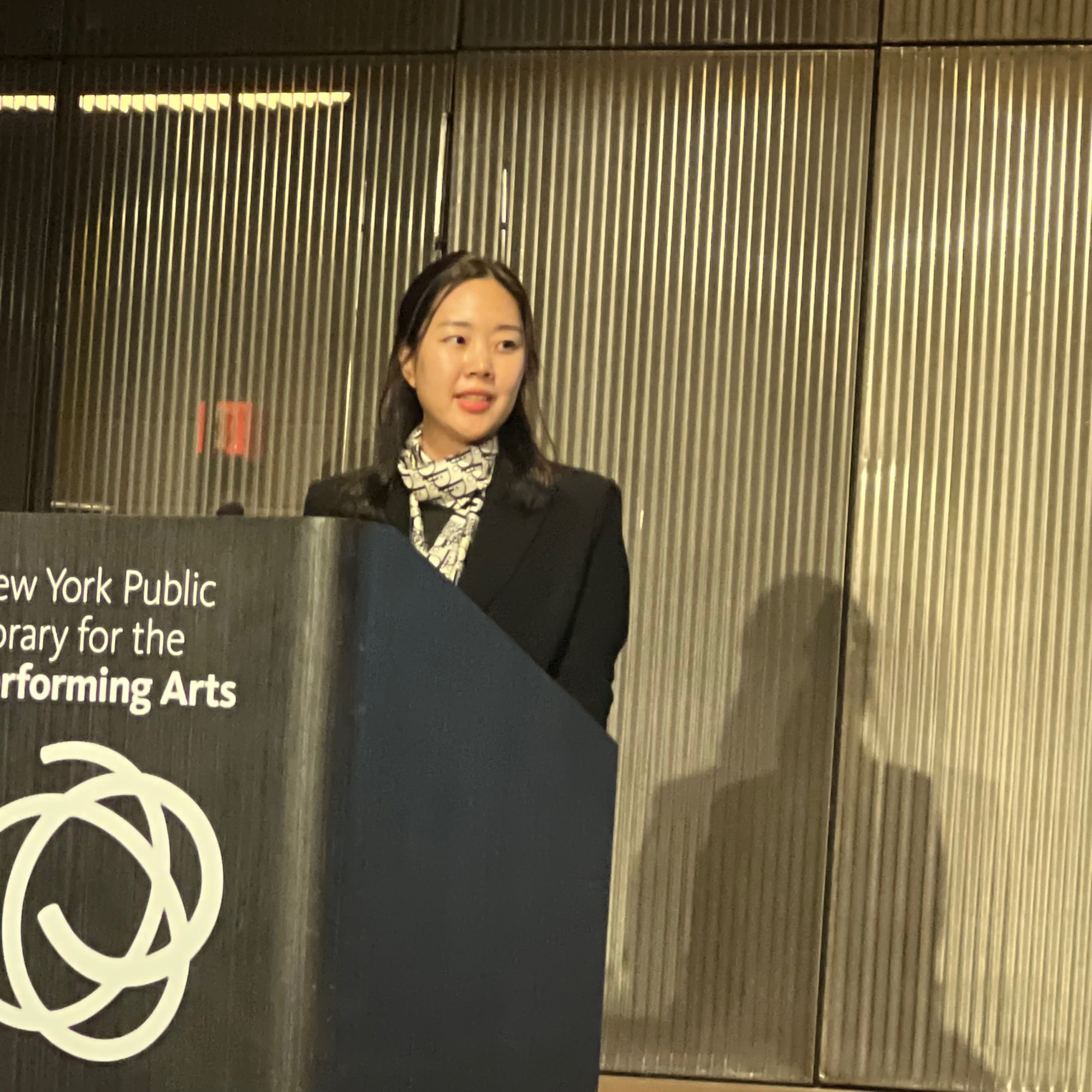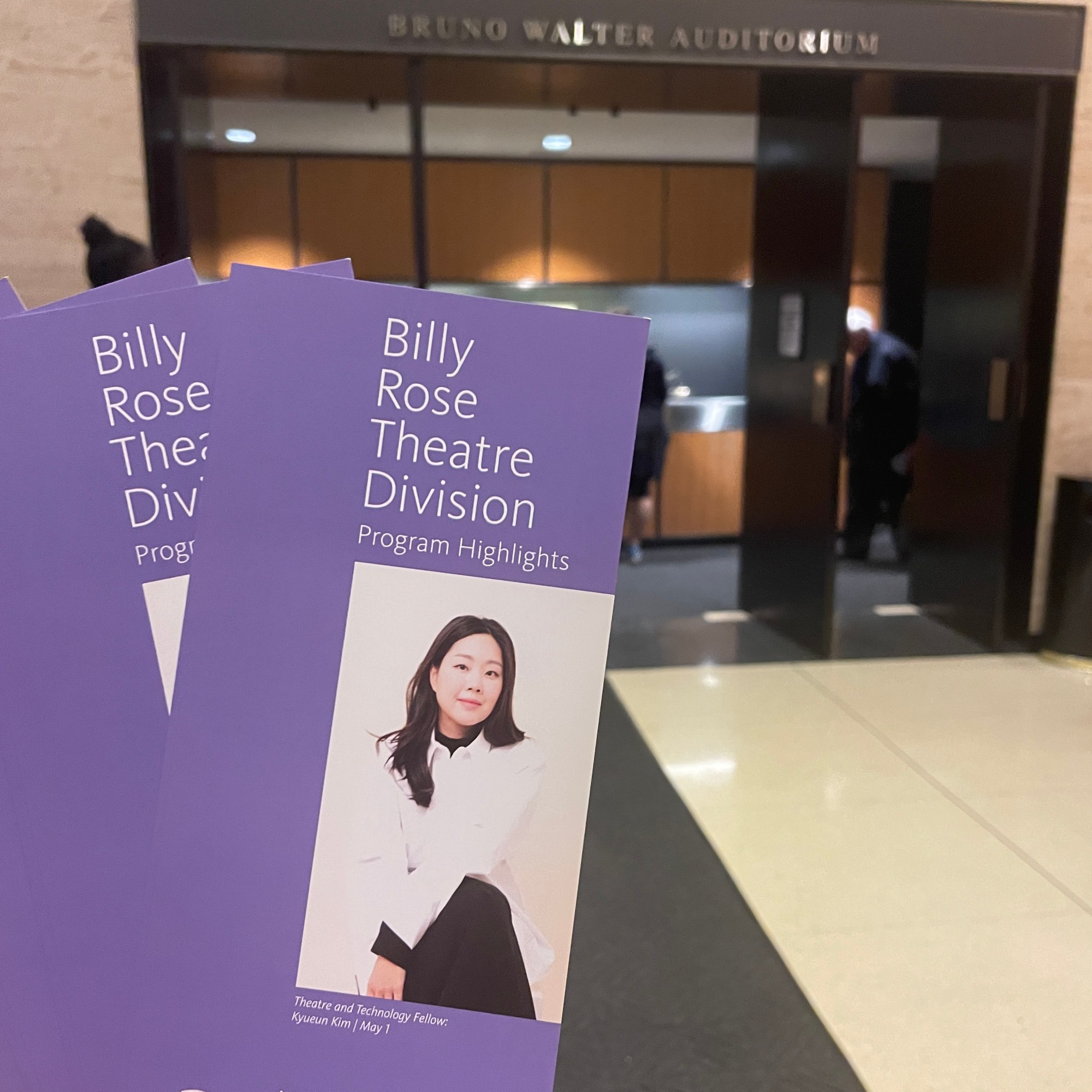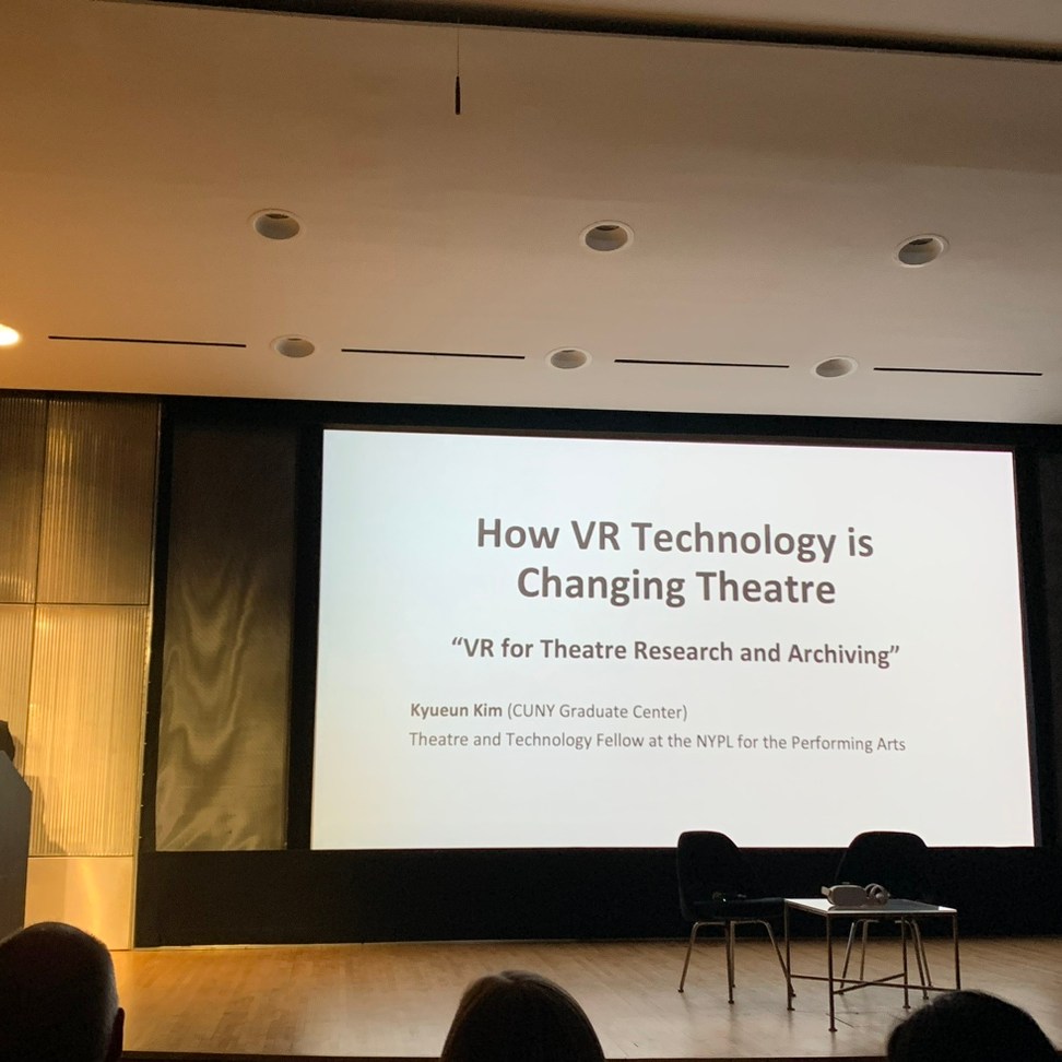 As an inaugural theatre and technology fellow at the New York Public Library for the Performing Arts, I had an honor to present a public lecture on “How VR Technology is Changing Theatre” at Bruno Walter Auditorium, NYPL for the Performing Arts at Lincoln Center on May 1, 2023. As a first-year graduate student in New York, we were required to learn how to conduct research using the library’s collection to understand the processes and possibilities of performance research. It was such a pleasure to return to this space toward the end of my Ph.D., something I could never have imagined when I first set foot in the beautiful building in 2015. I delivered an hour-long lecture, followed by a curated conversation with the curator, Dr. Doug Reside.